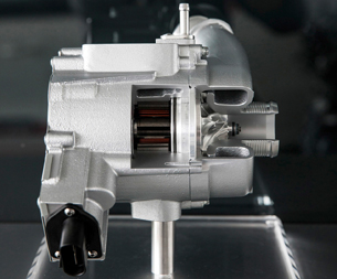במקרה של הטורבו המשולב עם מנוע חשמלי, זה למעשה יישום קל (משקל) ופחות בזבזני (אנרגיה) של טורבו משולב מגדש על .