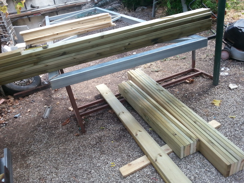 אחרי תכנון ראשון גיליתי שאין את מידות הקורות שתכננתי עליהן, ובהתייעצות עם מחסן העצים בחרתי בקורות "דק אורן" במידה 140 על 33 מ"מ.