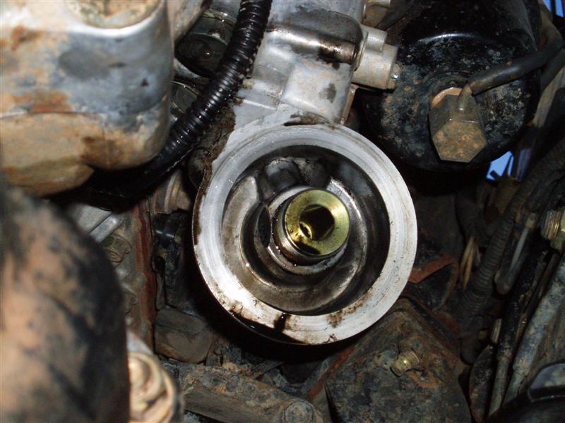 תסתכל על הפילטר הגדול, יושב מעליו הקולר שמן - על הקולר שמן יש בורג גדול... לדעתי יש שם שניים כאלה בסביבה