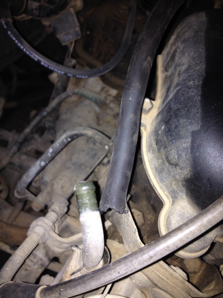 ישנו צינור שהתנתק חלקית ,אני חושב שהוא מתחבר לקרבורטור,, (יוצא ממנו אוויר חלש מכיוון המנוע),,