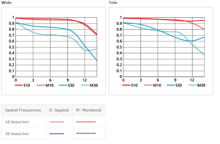 הגרפים משמאל מתארים התנהגות עדשה במצב WIDE ואילו הגרפים מימין מתארים התנהגות אותה עדשה רק במצב TELE.