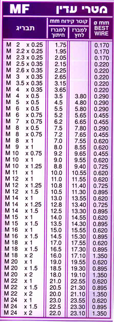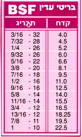 לפני עשרות שנים ואני מדבר כבר יותר ממאה שנה היה לסבא שלי בית דפוס-והיתה שם כמות מכובדת של ספרות טכנית וכמובן חוברת עם כל סוגי ההברגות שהיו אז באירופה רוסיה רבתי וארצות הברית,כולל מידות משונות שלא היו סטנדרטיות,