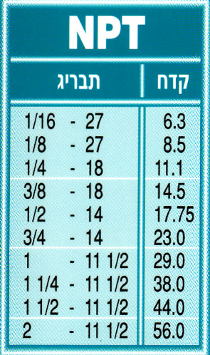 כמו בכותרת, אני מחפש אחר טבלת קדחים להברגות ומידת פיטמות גירוז.