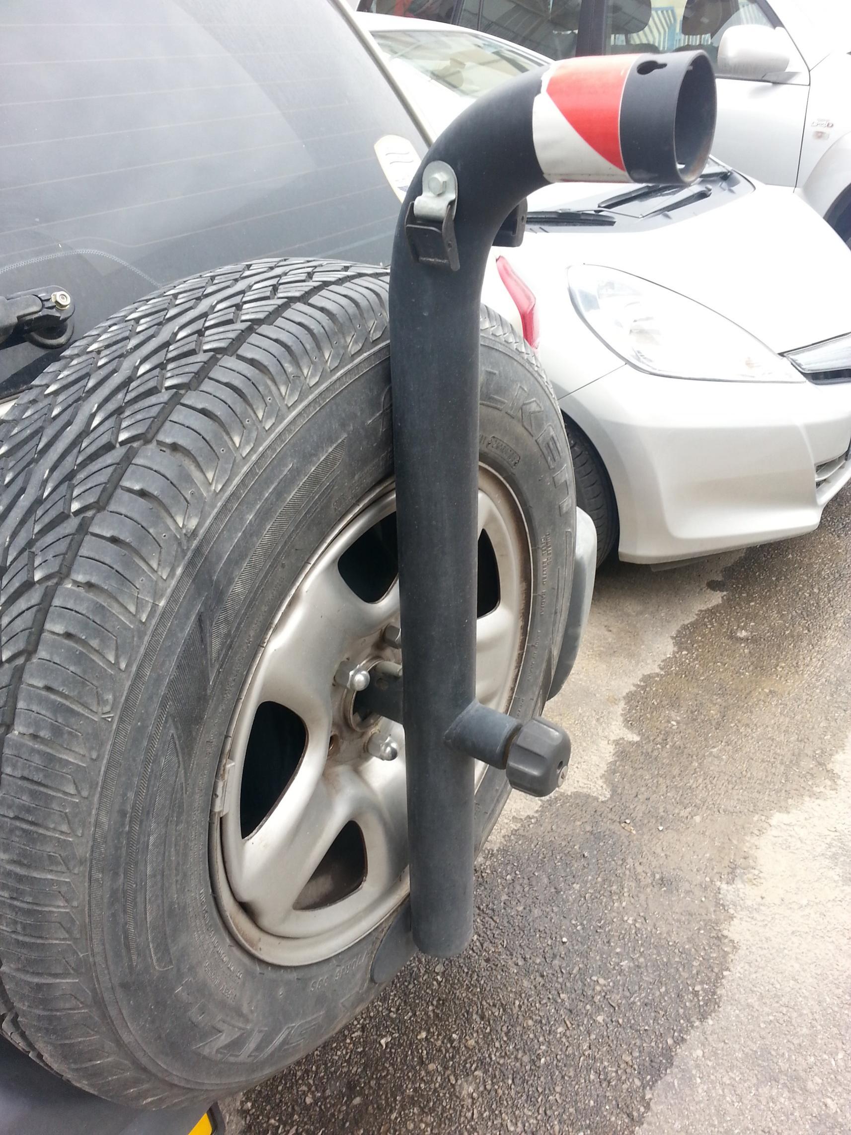 ראיתי את הצינור הזה מותקן על הגלגל האחורי של רכב שחונה ליד הבית שלי: