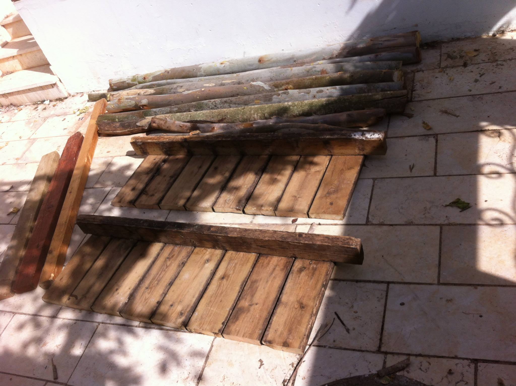חשבתי מה לעשות עם העצים , ובסוף החלטתי לצרף חתיכת דק ישן שמישהו זרק , וזה מה שיצא.