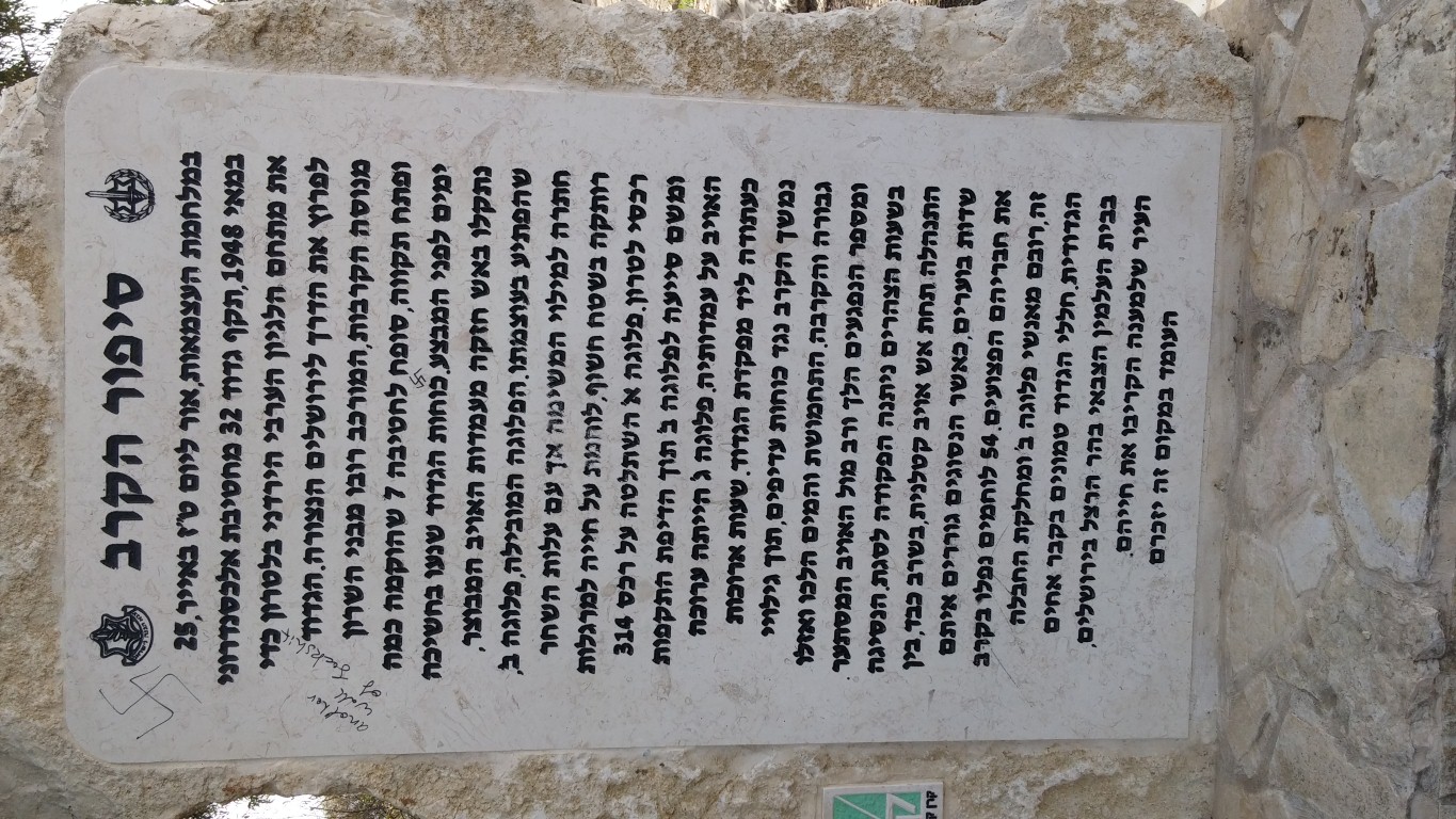 לתדהמתנו ראינו 2 צלבי קרס משורבטים על לוח השיש המתאר את קרבות החטיבה באזור.