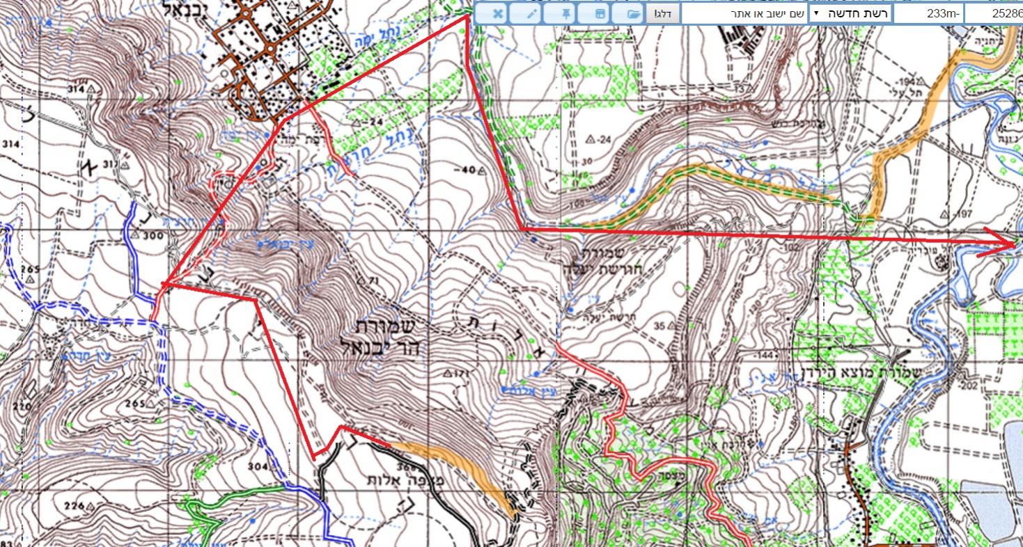 עוד הערה: הכניסה למסלול נחל יבנאל (שלא לאלה שבאים מהכביש הראשי לפי שילוט - מה שאנחנו לא עשינו), השביל הירוק עובר בצמוד למתקן השפכים מצד דרום - סימון הפנייה מוסתר ע"י כל מיני גרוטאות.