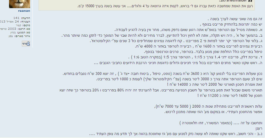 הנסועה שלי עם הפרייבט כ 15000 קמ' בשנה
