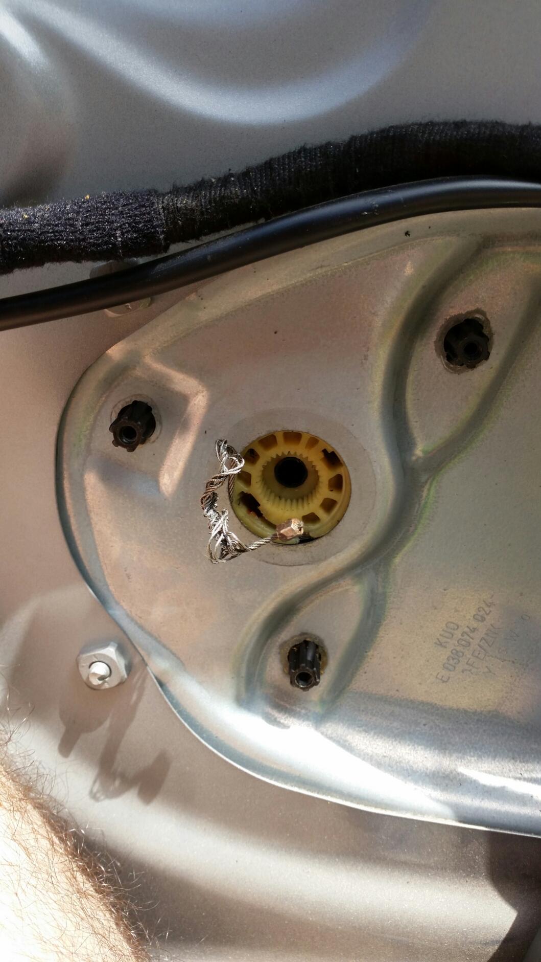 פירקתי את המנגנון של הדלת וראיתי שחוט הברזל שמסובב את גלגל השיניים שמעלה ומוריד את החלון התעוות ואינו בר החזרה למקומו.