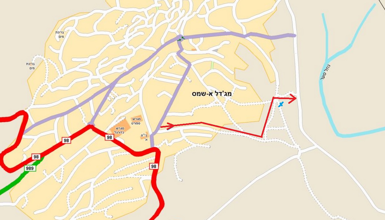 המעיין העתיק של מג'דל א שמס נמצא בתחילת הירידה (סימן כחול במפה) ואישור לניסים שהוא עושה ,אתם יכולים לראות בהגדלת האוכלוסייה הדרוזית בגולן !