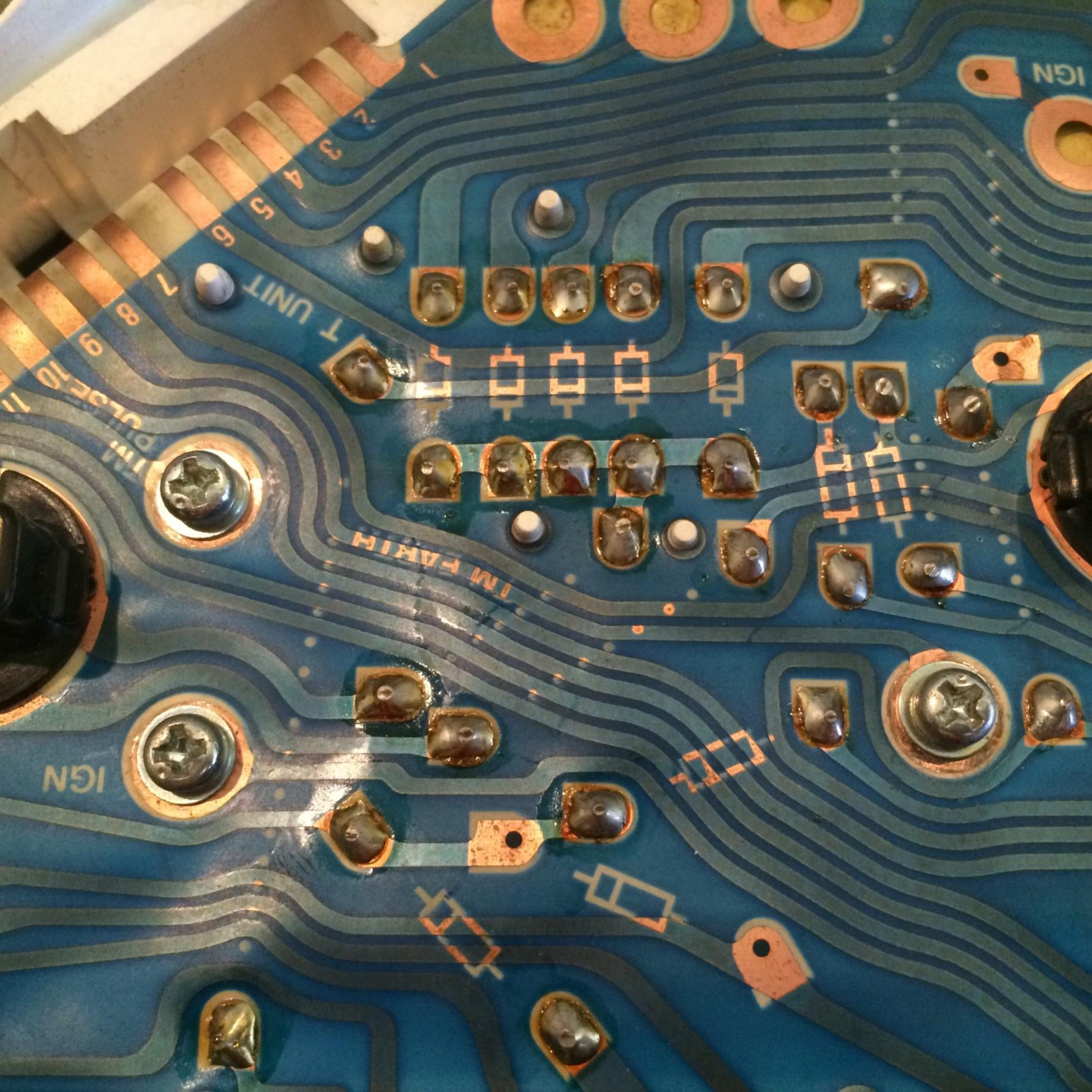 מכאן הטיפול היה פשוט. ניקוי המגעים (טבעות הנחושת מסביב לחורים של הברגים) על המעגל החשמלי בלוח המכוונים בעדינות עם סכין יפנית וספריי מגעים, ניקוי הברגים עם ספריי מגעים והרכבתם תוך חיזוק בכח סביר להבטחת מגע.