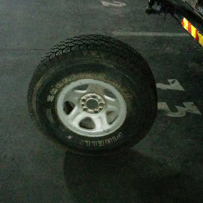 למסירה - צמיג אחד עם תיקון שרוך (תולעת) בדופן. ללא תקרים. סוליה יפה, כ-70% בשר. נסע עד היום אחה"צ ללא בעיות. לא מאבד אויר, אבל לדעתי מוטב שישמש כספייר.