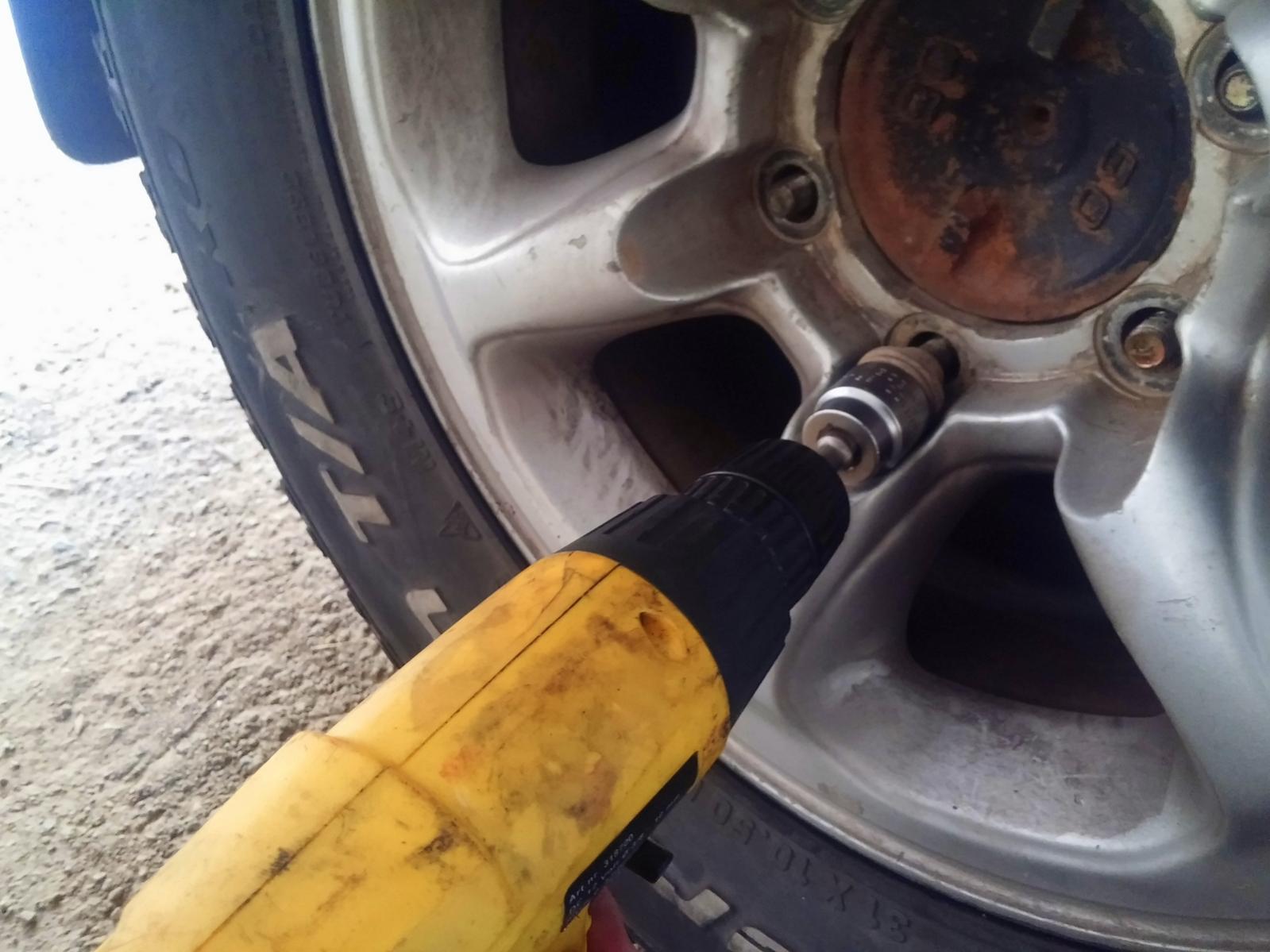 6.נפתח את כל אומי הגלגל בעזרת הידית או בעזרת מברגה (אנחנו אוהבים מברגות שמחוברות לשקע מצית). את האומים נניח בכלי ולא על הרצפה עם מנת שלא נאבד אותם ושלא יתמלאו בחול/לכלוך.