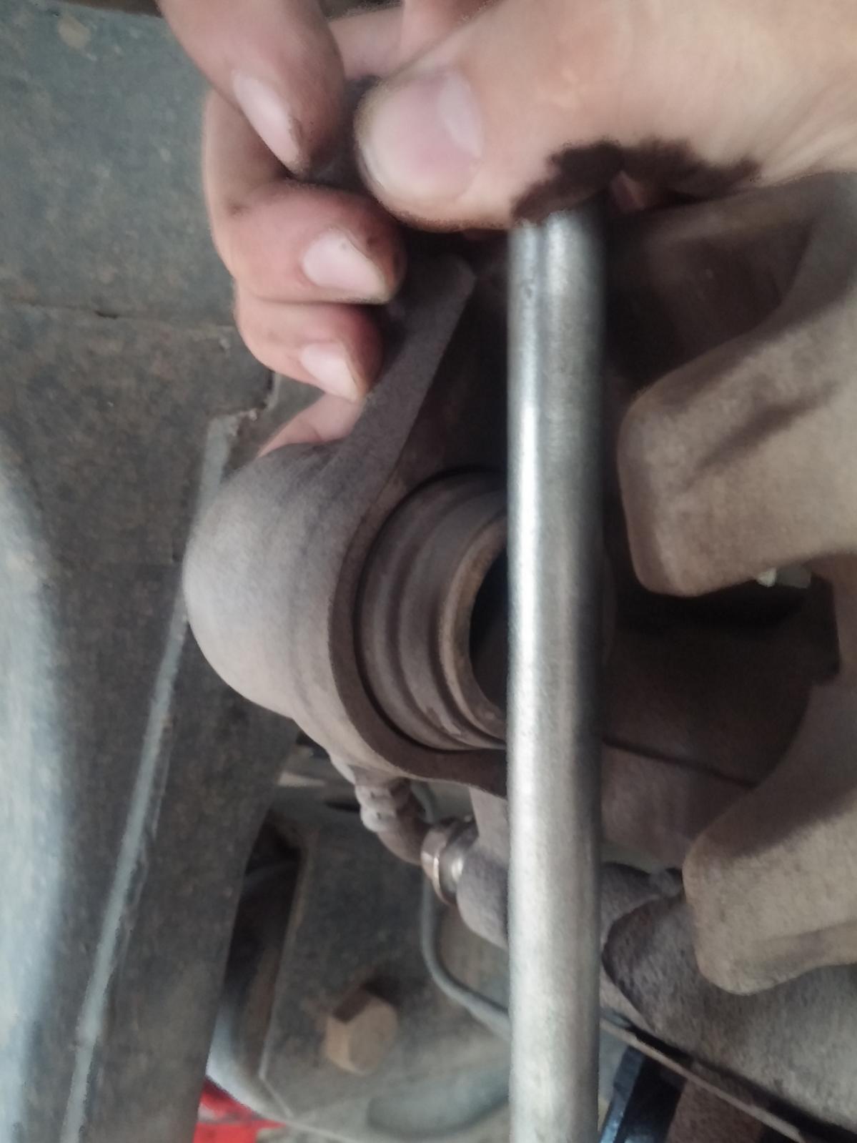 15.בעזרת מוט הג'ק, ידית הכוח או כל דבר אחר נייצר לחץ על גבי בוכנת הקליפר ונדחוף אותה אחורנית על מנת שנוכל לסגור חזרה את הקליפר לאחר התקנת רפידות חדשות – עבות יותר מאלה שהרגע הסרנו.