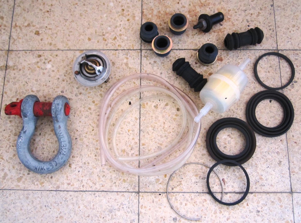 5. כל מיני פיצ'פקס באחת התמונות (שפריצר מקורי לסמוראי - זה של הוישרים , טרמוסטט תקין במצב חדש+פילטר+גומיות+קיט שיפוץ למשאבות ברקס וכו'....) - 50 ש"ח למי שייקח הכל.