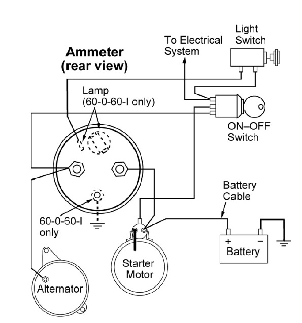 בשרטוט שהעלית, זרם לסולונואיד המתנע (סטרטר) גם יעבור דרך מז הזרם (אמפרמטר) וזה לא רצוי
