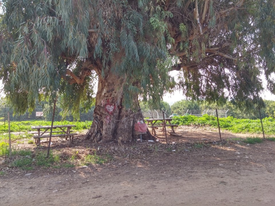 אאל״ט העץ הראשון הוא אדר סורי הנטוע בפינת סכר. חלק מפרוייקט מפעל נחלי מנשה בקרבת נחל משמרות (ע״ע). השני, במעלה הדרך הוא שריד לאקליפטוס עוג שקוצץ לפני כעשור על חברת חשמל. תחתיו פינת מנוחה של עובדי מטעי האבוקדו של שותפות גרנות-איכרי פרדס חנה.