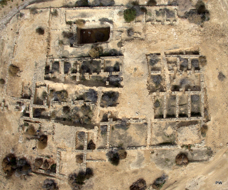 זה היה קשה ביותר, אבל בסופו של דבר פתיר... מצד אחד רואים בתמונה אתר ארכאולוגי משמעותי (יש דמויות בפינה השמאלית, נדמה לי, שנותנות קנה מידה, בנוסף לקנה המידה שמקבלים מהפתחים בחדרים) וחפור, לא סתם אבנים מפוזרות. סביבה מדברית אבל לא צחיחה לגמרי. קוי מתח נראים בפינה הימנית התחתונה ,מה שמרמז על קרבה לציביליזציה או לפחות לעורק תחבורה מודרני.