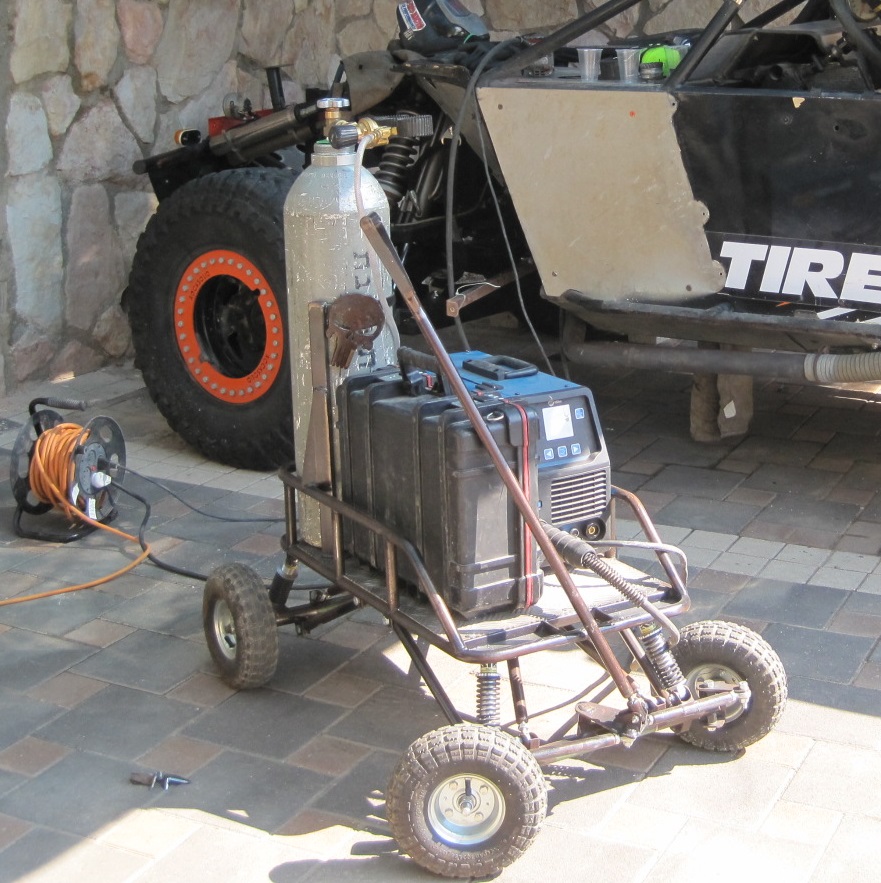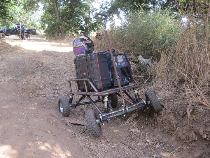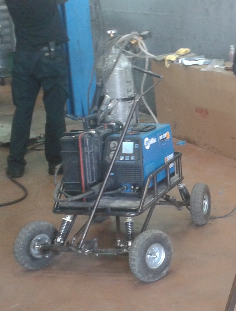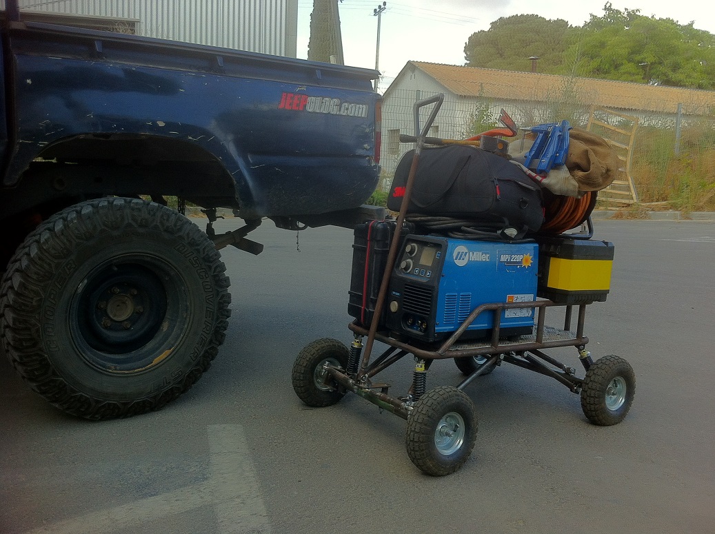 זו עגלת הריתוך שלי , מכיוון שרוב העבודות שלי נעשות OUTDOOR אני צריך שהיא תוכל לסוע לא רק על בטון מוחלק;)