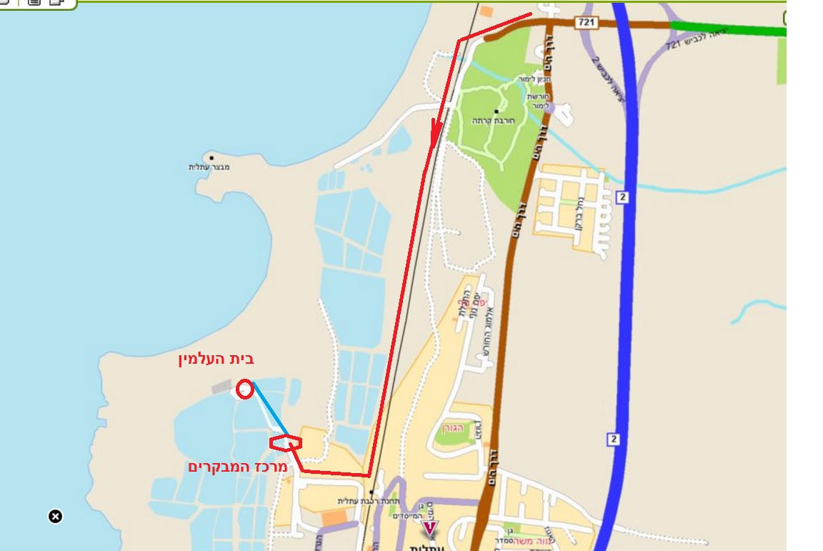 מפת הגעה -ממשיכים ממחנה המעצר בעתלית מערבה ,הסימון האדום דרך כורכר מקבילה לפסי הרכבת תיכף אחרי המחסום.