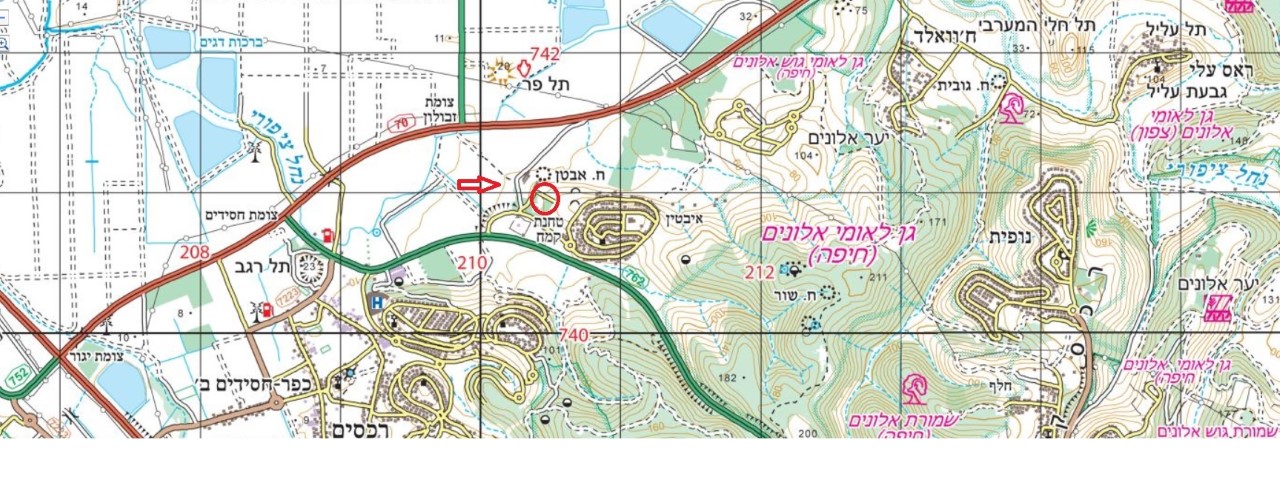 ממש בכניסה לכפר הבדווי "איבטין" על הכביש המוליך מצומת כפר חסידים לכיוון נופית ורמת טבעון.