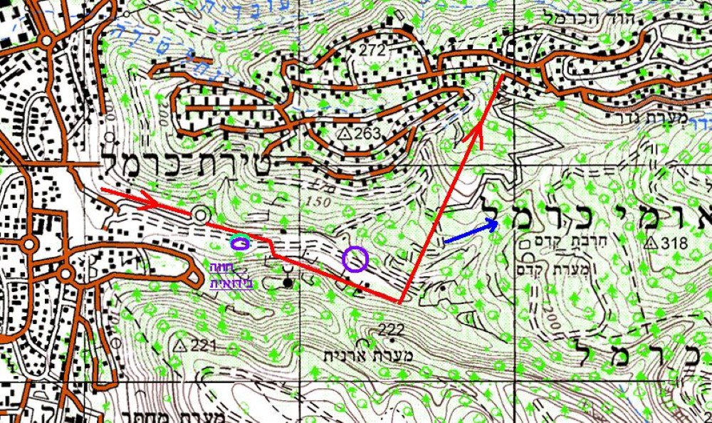 אם מגיעים מכיוון טירת הכרמל, אחרי שעוברים את חוות הסוסים,מומלץ "לקחת" את השביל הימני (דרומי-שאינו מסומן במפה)