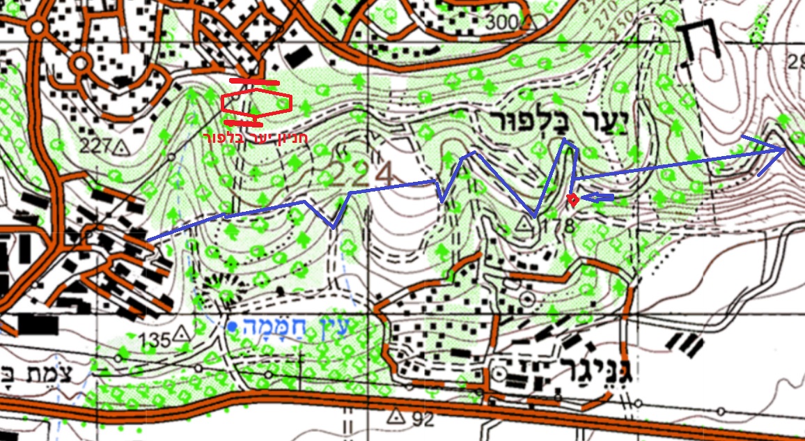 חדי העין יבחינו גם שסימנתי שאין מעבר לכיוון חניון יער בלפור (המשושה האדום בצד שמאל העליון של המפה).