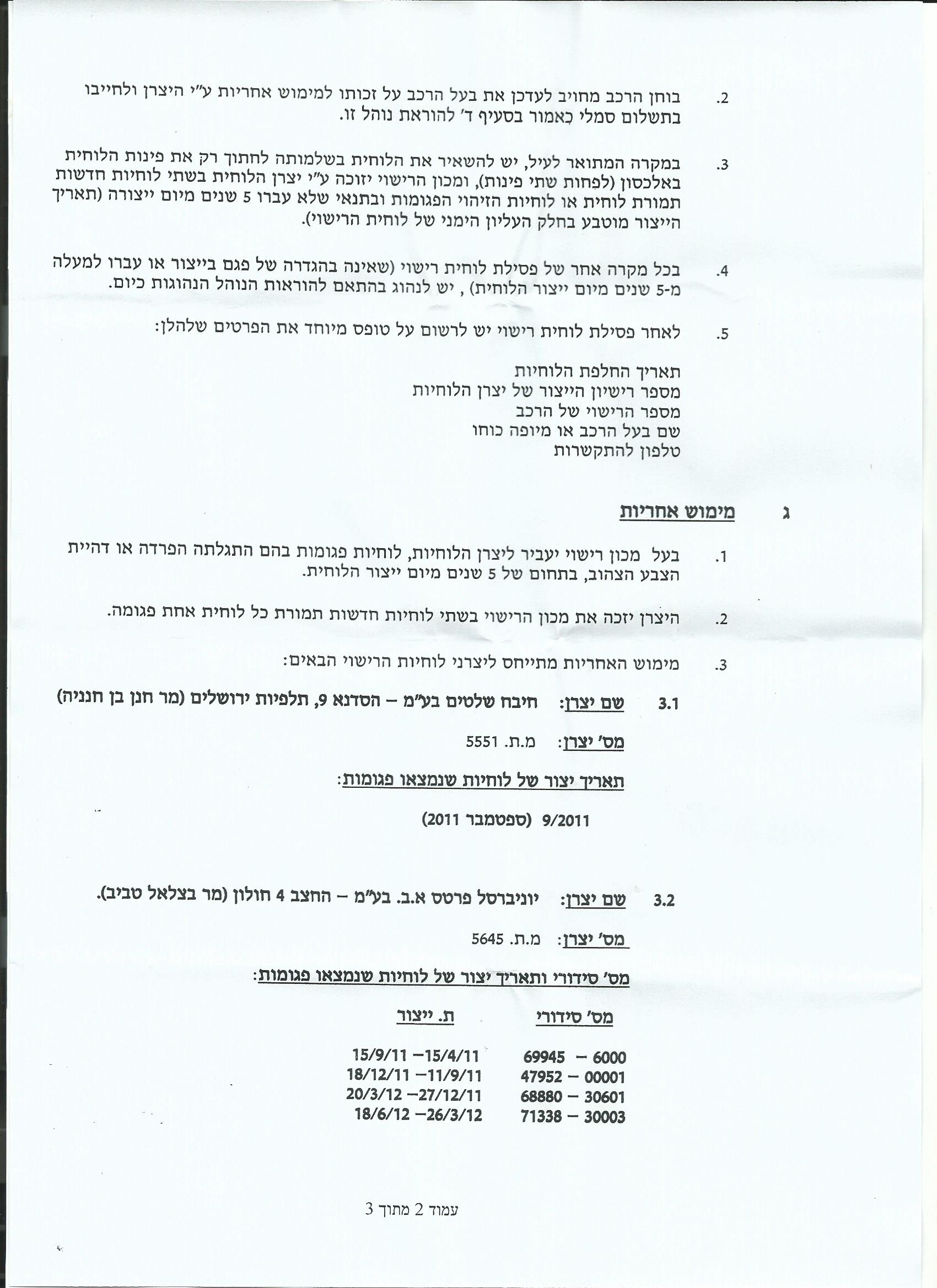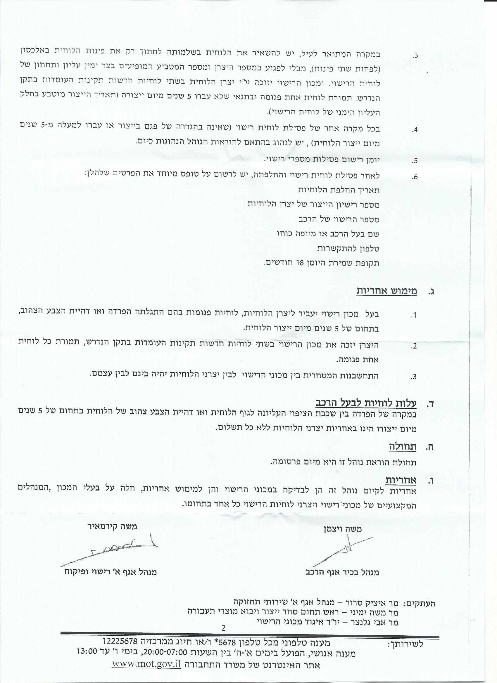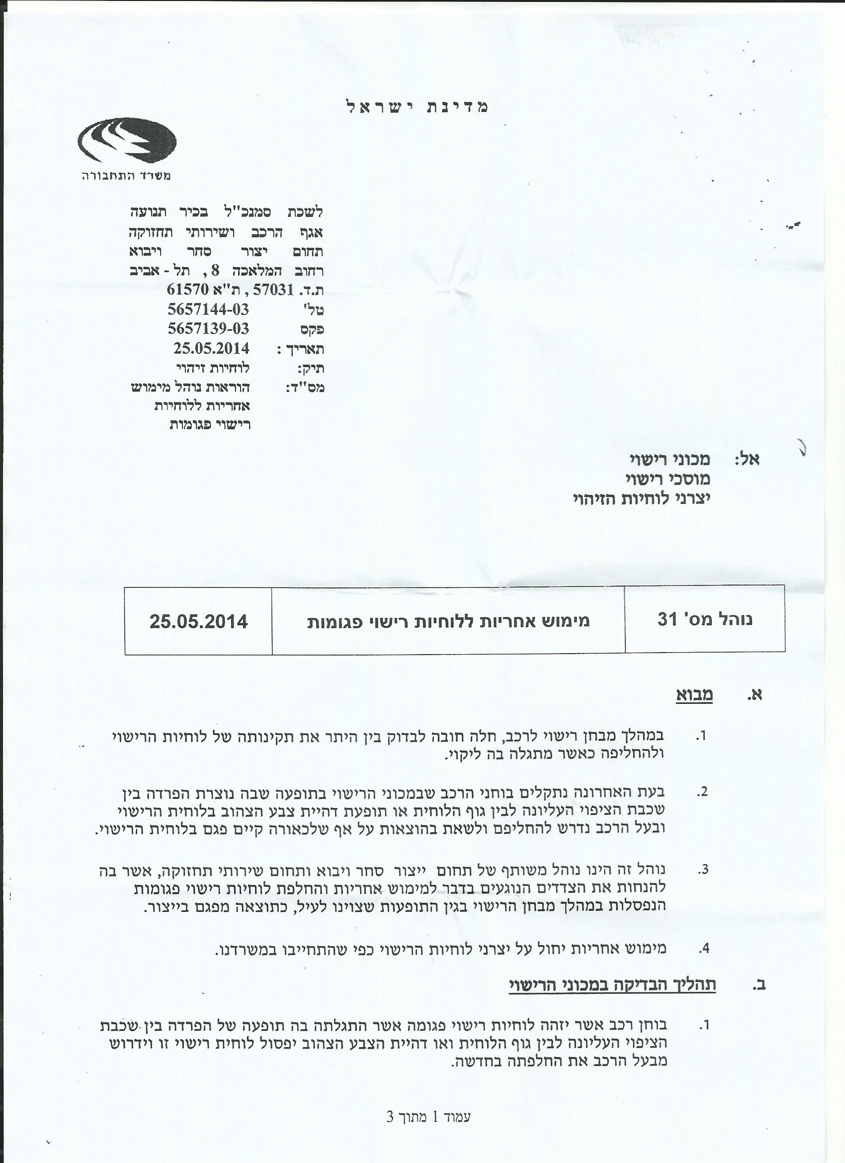 תגובה: הוראת נוהל 31 מאפשרת לכם לקבל לוחית רישוי חדשה חינם בטסט