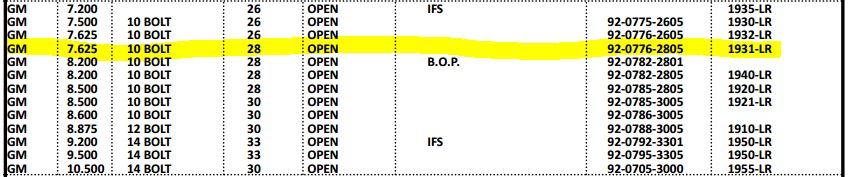 סרנים של GM והמספרים הקטנים (gm 10 bolt 7.5/7.65 )