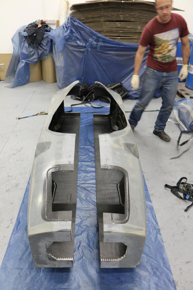 · שלדת מונוקוק מלא מסיבי פחמן