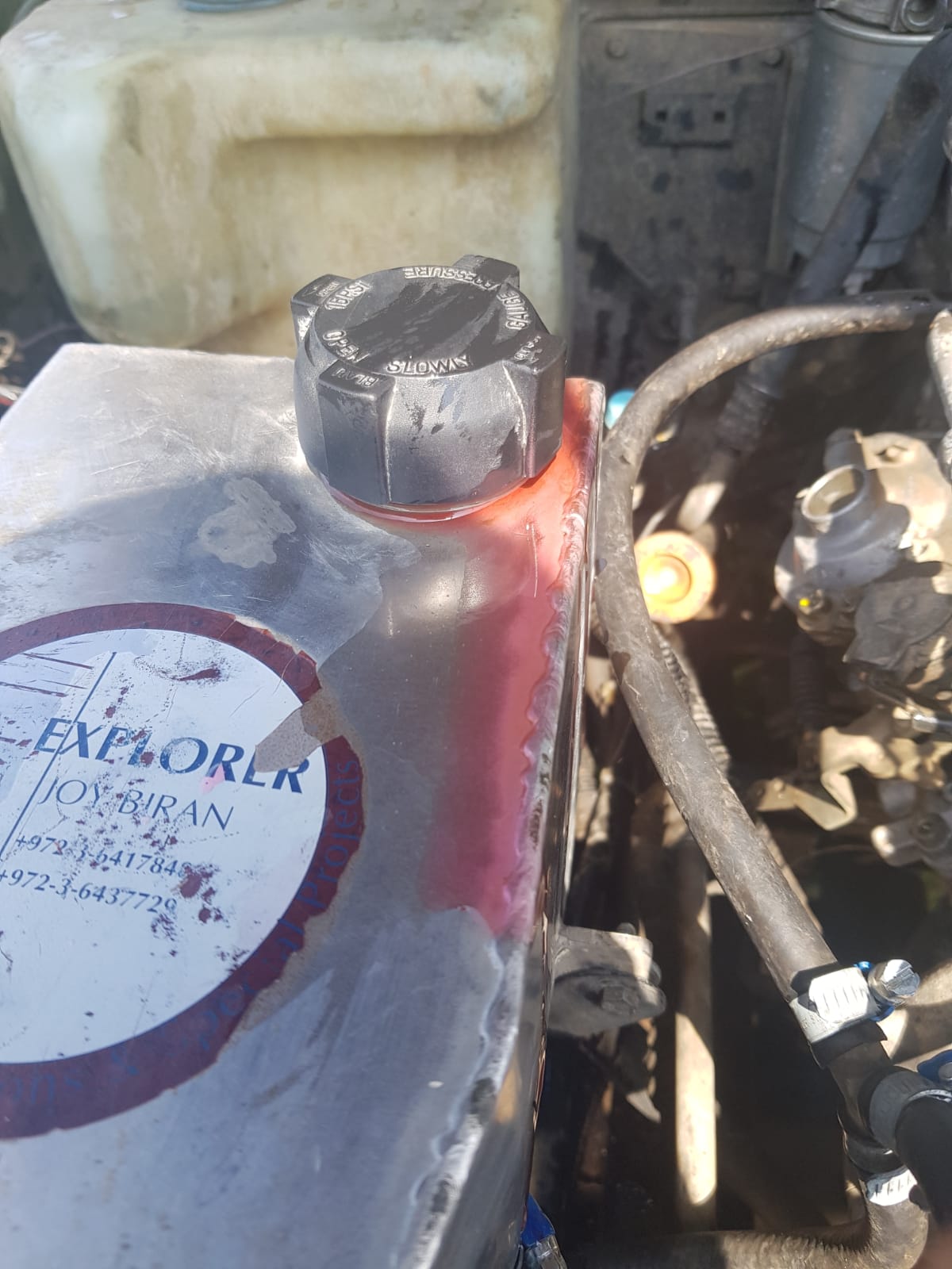 בהתחלה הכל היה בסדר, אחרי כמה דקות התחילה דליפה של מים מהפקק, ובפתיחה שלו יצאו מים בלחץ גבוה (לא רותחים) וזה כשהמנוע בחצי מטמפרטורת העבודה (כלומר רבע על השעון).