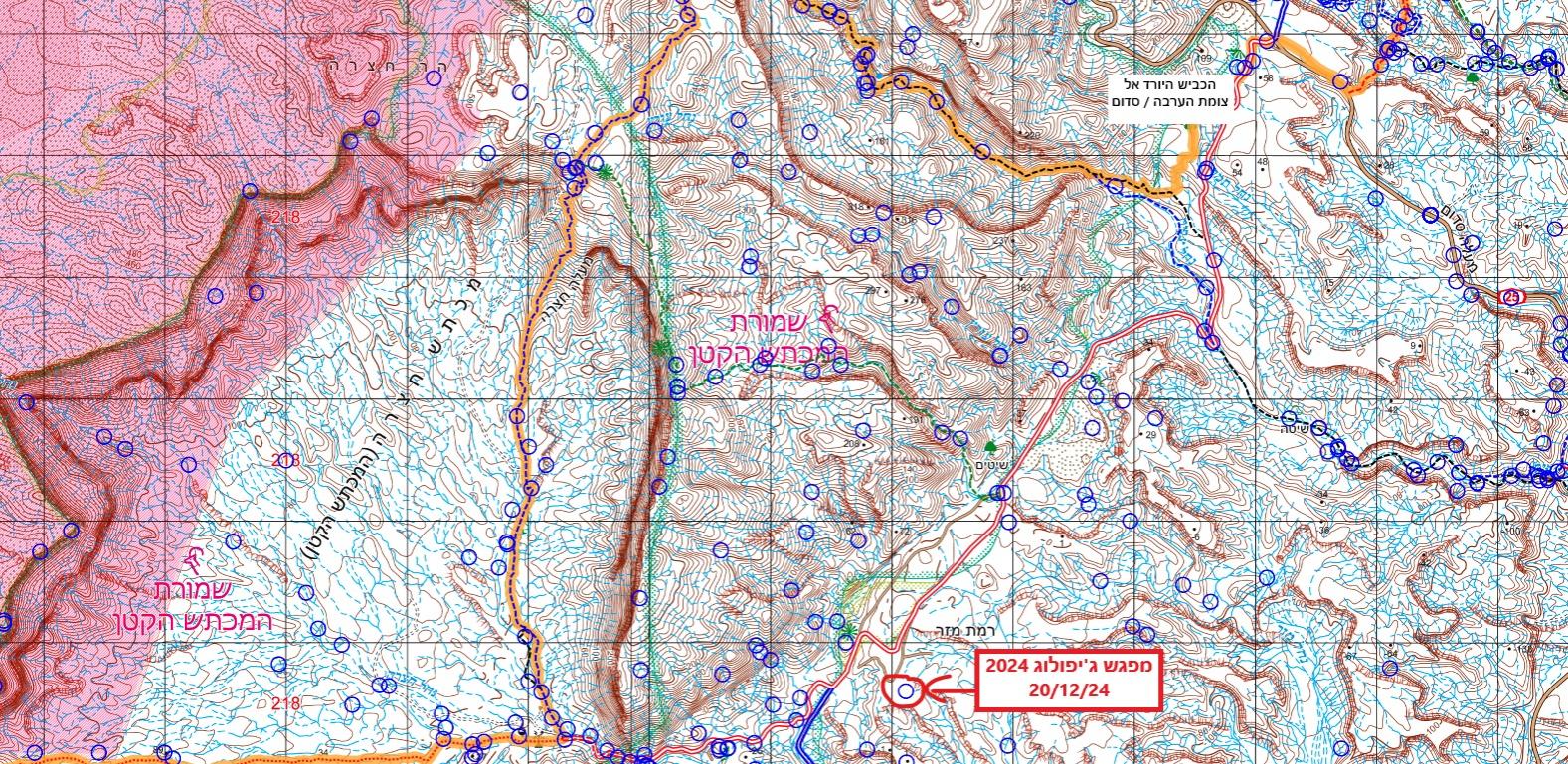 למגיעים מכביש הירידות אל סדום (דימונה - צומת הערבה - סדום) - יש פניה ימינה לכיוון המכתש הקטן, השביל האדום בתמונה.