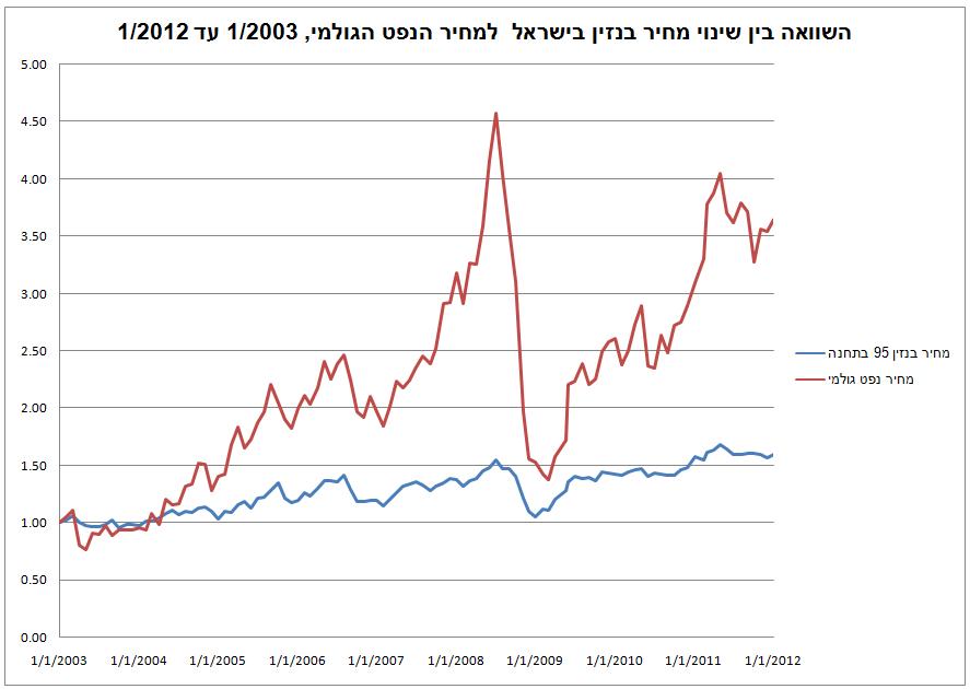 מחיר בנזין עלה בתקופה הנדונה מ4.54 שקלים ל7.23 שקלים. עלייה של 59%. מחיר הנפט הגולמי עלה מ30.8 ל112.1 דולר לחבית. עלייה של 264%. מחיר הנפט מאד תנודתי - וזה עוד כלום, כי לקחנו נקודה אחת בכל חודש, ובפועל השינויים הם יומיומיים ודרמטיים יותר. ניתן לראות שכל שיטת התמחור הממשלתית מטרתה למתן ולרסן את השינויים, "ליישר" את הקו, כי אין באמת אפשרות אחרת לנהל כלכלה.