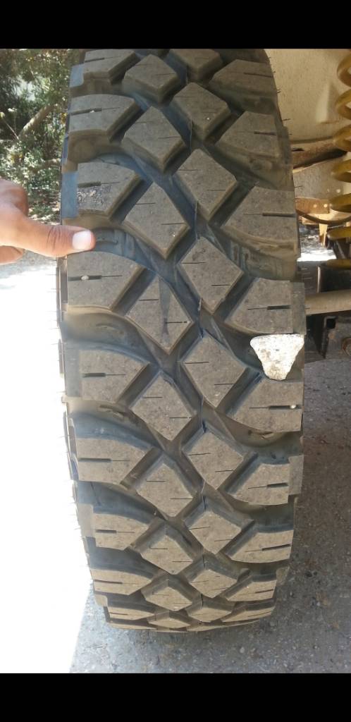 הצמיגים הם מ-34/18 . מצ"ב תצלום של 2 סוגי צמיגים ניצבים אחד מעל השני . אני הזמנתי מהיבואן את הדוגמה התחתונה . הגיעה העליונה . אין קוביות ( שיתלשו/יתפרקו ) אלא פרוסות רוחביות/שברון/CHEVRON . נסעתי אתם בדרום , חצבה/סובב , מעלה הנחש הצמא , ירדו את זיק , משלט 21 , ומעלה יאיר . כשהתבצעה הפחתת לחץ אויר ל-10-15psi , נתנו אחיזה יפה ומעלה , ללא פרפורים. בטיול בדרום נסעתי בתחילה 2x4 LOW כדי לבדוק את האחיזה שלהם . הייתה טובה עד שהפסקתי עם זה כי כאב לי להפעיל את כל המאמץ על הגל הינע אחורי/ביצה אחורית/ציריות אחוריות . אני גם הרגשתי אבל גם אחיין שלי שעבר לטנדר סמוראי עם BF M/T OR A/T אמר לי שבזמן שה-BF פרפרו קצת ה- CHEVRON נשארו צמודים לקרקע.