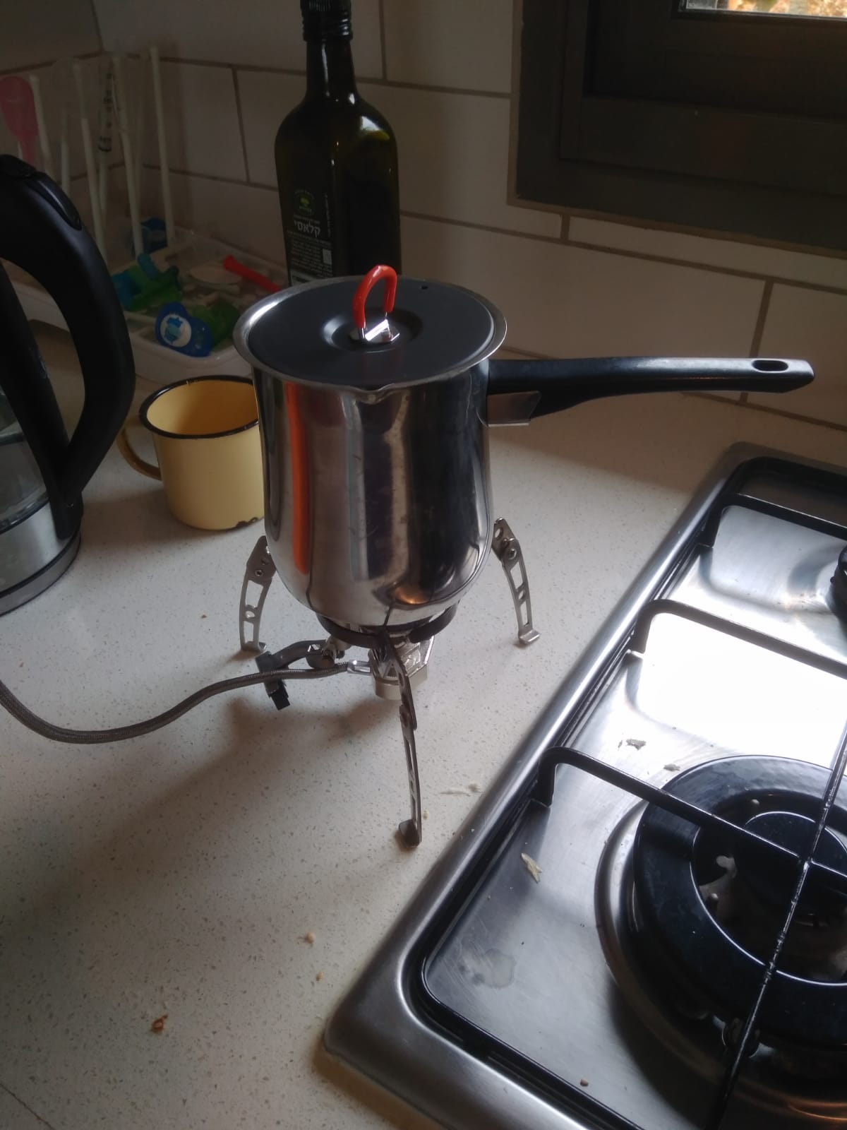 בינתיים אני עם זה: מכיל בתוכו את הבלון גז ומספיק גם ל6 כוסות וניתן להכין קפה עם המדורה, (לא בטוח שזה אפשרי עם האלומיניום/טיטניום האלו)