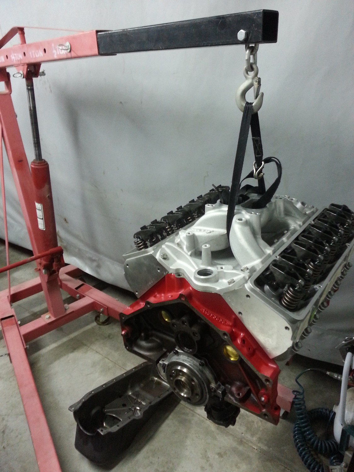 בשביל ההרמה חיברתי באופן זמני את סעפת היניקה וחיברתי רצועה בין הסעפת למנוף.