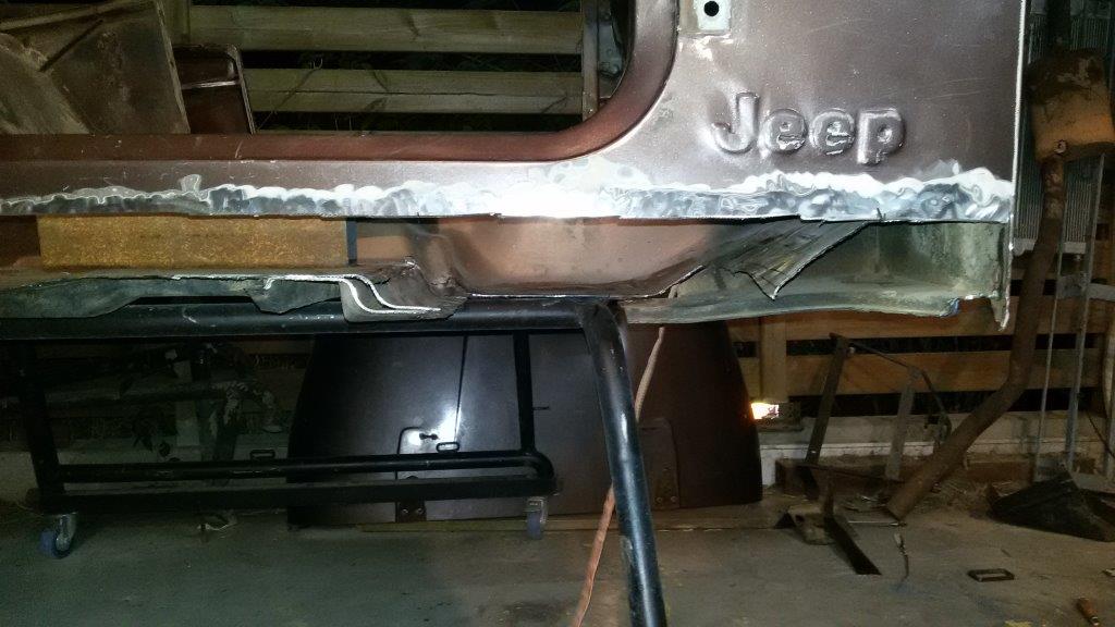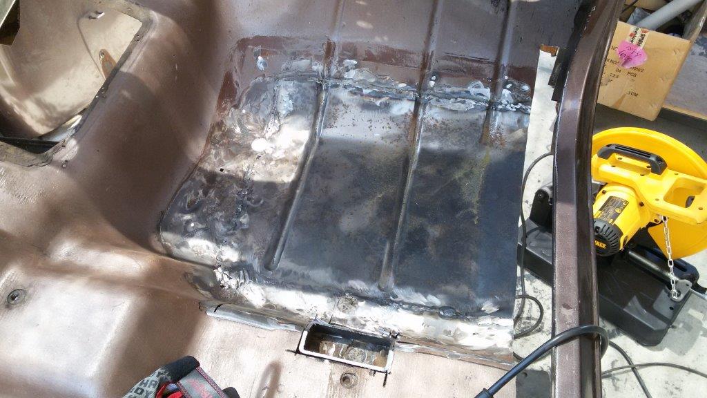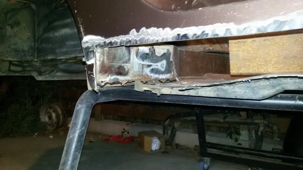 התחלתי לחתוך את הגוף ולהחליף פחים. הפאץ' הראשון שנכנס למקום זה רגלי הנוסע. יצא סביר, יש הרבה לקחים. את הלוח הזה ניסיתי בשיטה משולבת - butt-weld מאחורה וחפיפה, overlap, מקדימה. אני חושב שbutt-weld עדיף בהרבה, למרות שבכל מקרה התוצאה מספיק חזקה וטובה. למי ששואל - פרופיל 100X50 הולך להחליף את כל הפינה, גם מחליף את כל האזור הרגיש הזה לרקבונות, גם משמש בסיס לכלוב ההתהפכות - חיבור בין הקשת הקדמית למרכזית, וגם בתור רוקר פאנל/מדרגת צד הכי חזק שיכול להיות. המשך ביום שישי הבא.