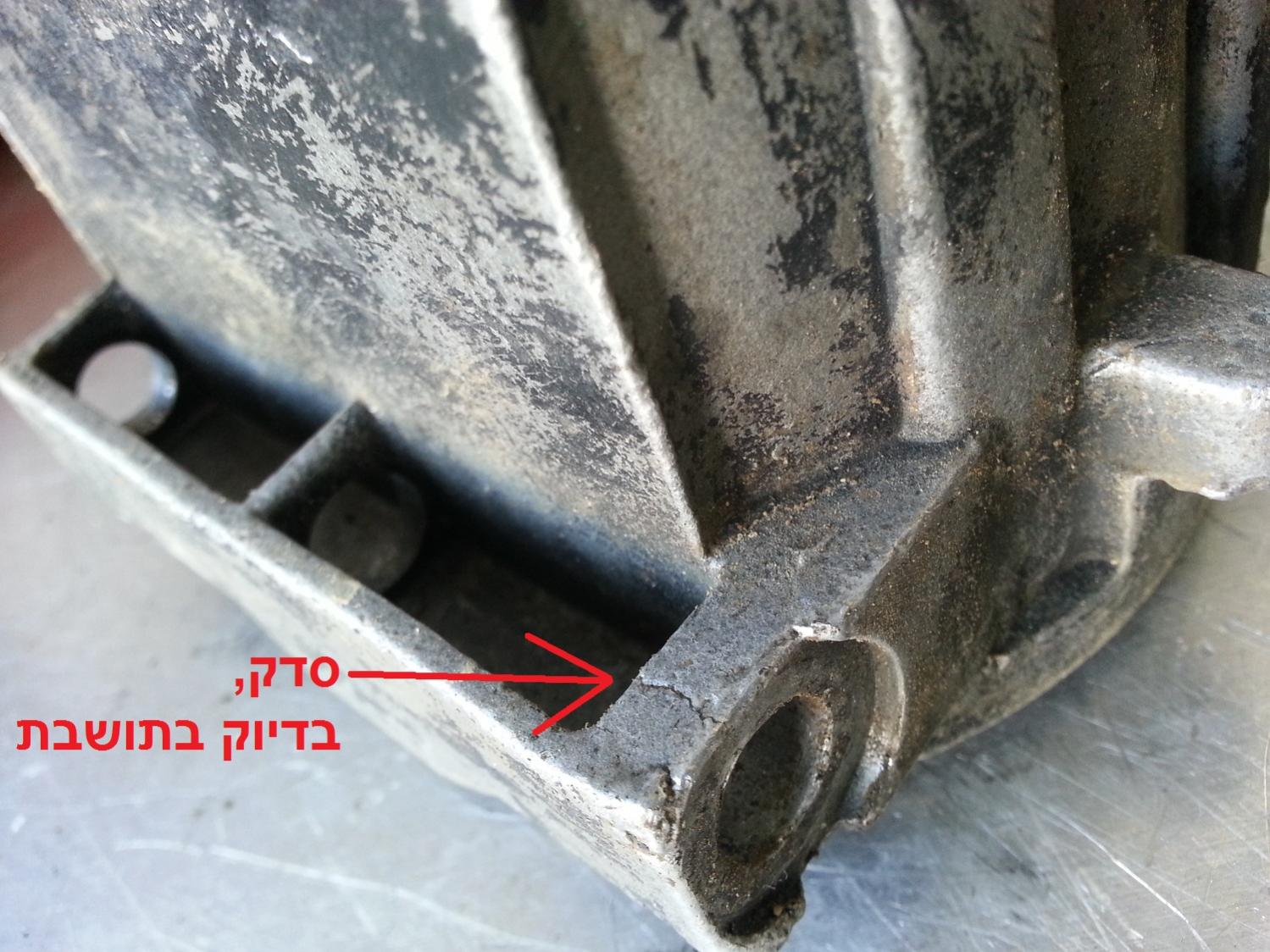 הסדק הזה בתושבת הבורג נגרם בגלל שפחית שאמורה להחזיק את הסטרטר מאחור, הייתה חסרה.