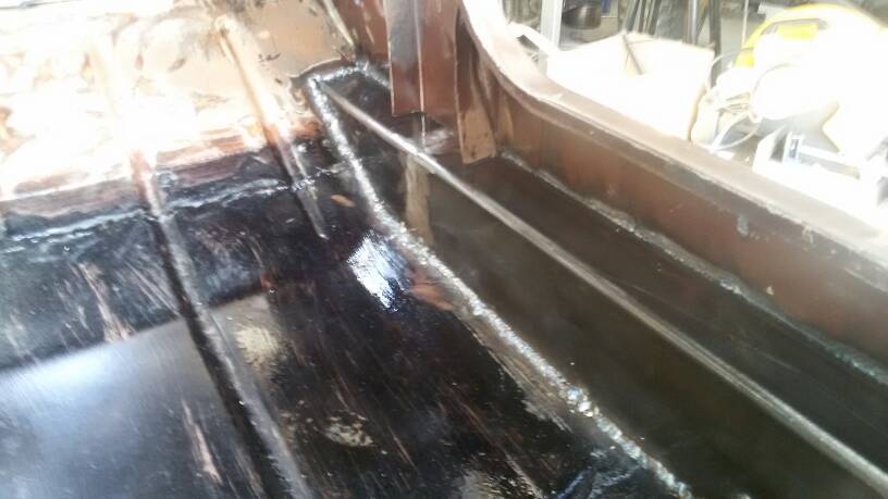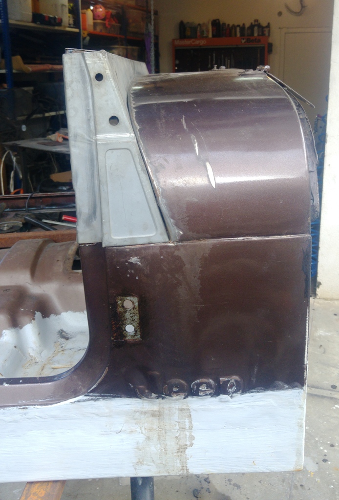 כל הפינה הזאת רקובה, מקדימה ומאחורה, פחות או יותר בכל ג'יפ. הפרופיל מתלבש יפה, בלחץ, בין קיר האש מקדימה והקיר האופקי של בית הגלגל מאחורה. כל מה שצריך זה לחתוך מדויק פחות או יותר. הריתוך של פח למשהו עבה קל יותר מאשר ריתוך של פח לפח. הפרופיל העבה נותן משטח יחוס ישר ויציב לשאר הפחחות. זה באמת די קל לביצוע, בטוח יותר מאשר שחזור בפחים בלבד.