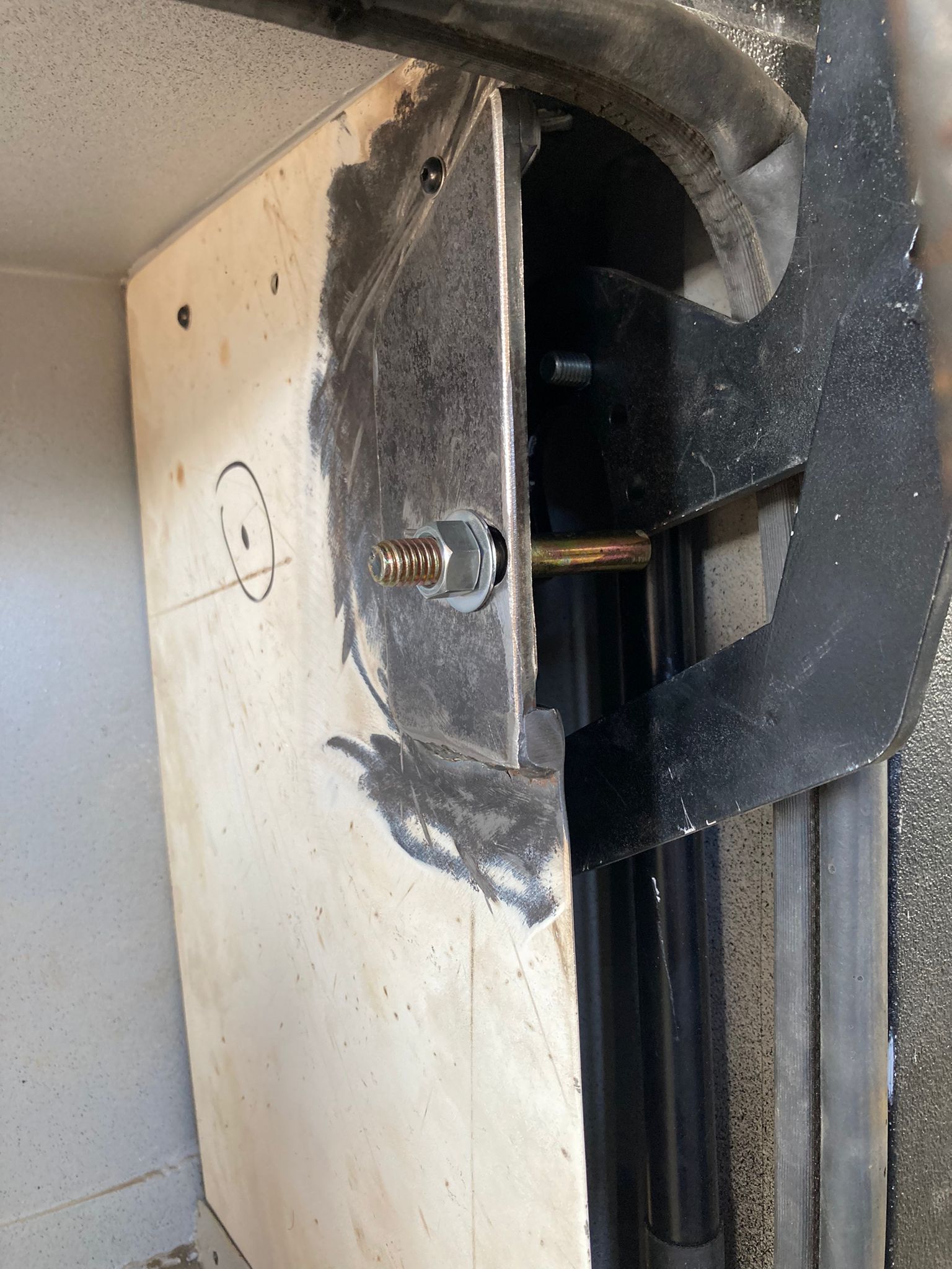 הצד האחורי היה קצת יותר מאתגר מכמה סיבות. ראשית הוא נסתר לגמרי כשהדופן סגורה, אין גישה לאזור. הייתי צריך לחבר כבל ישיר לתפסן כי עד שלא ארכיב הכל, אין לי איך לשחרר אותו פעם כשהדלת סגורה. חשבתי כבר בעבר לעשות איזה פתח שירות לאזור לכל מקרה אבל אני עדיין לא רואה לזה הצדקה. שנית, כאמור תכנון לחוד ומציאות לחוד. מישור התפסן בפועל לא יצא במיקום שתכננתי לעומת הדופן שאליו מתחבר הבריח כך שנאלצתי לעשות התאמות מקומיות ולהזיז את מישור הבריח ב 5 מ"מ מהדופן: