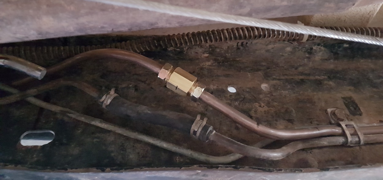 חיבור הצינורות הקשיחים לאורך השלדה, ניתן לראות את ההבדל בין החיבור ללחץ גבוה וחיבור ללחץ נמוך.