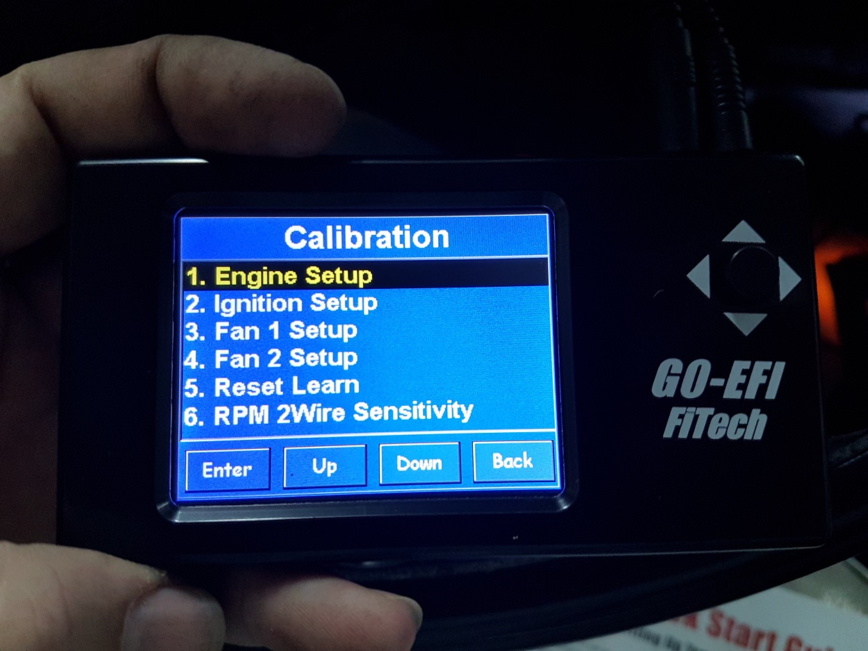 מסך הפתיחה מוביל לתפריט כיול ראשוני, בו במגדירים פרמטרים כמו נפח מנוע, מספר צילינדרים, סל"ד בסרק ועוד...