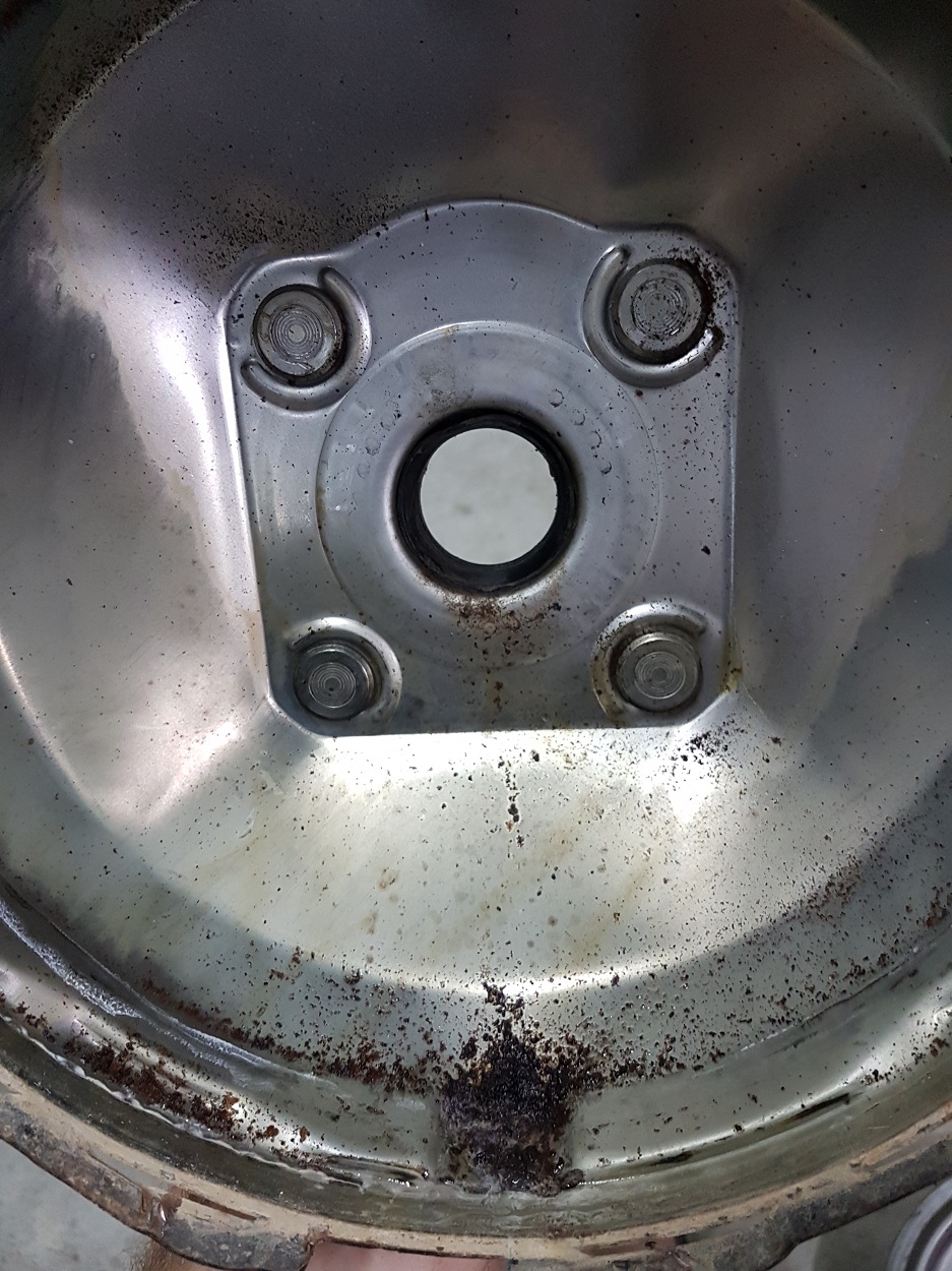 הנה הבעיה שלי, סימני נזילה נראים בבירור בשני החלקים, סימני הנזילה מתחילים שניהם באטם המרכזי ונעצרים בתחתית הבוסטר. שני צירים נכנסים אל תוך הבוסטר, אחד בכל צד. האחד תפקידו להעביר את הכוח שמפעילה דוושת הבלם אל הבוסטר והשני תפקידו להכפיל כוח זה ולהעבירו אל משאבת הבלם. שני האטמים שסביב צירים אלו - נוזלים. שניהם לא אוטמים וזו הסיבה שהבוסטר כשל.