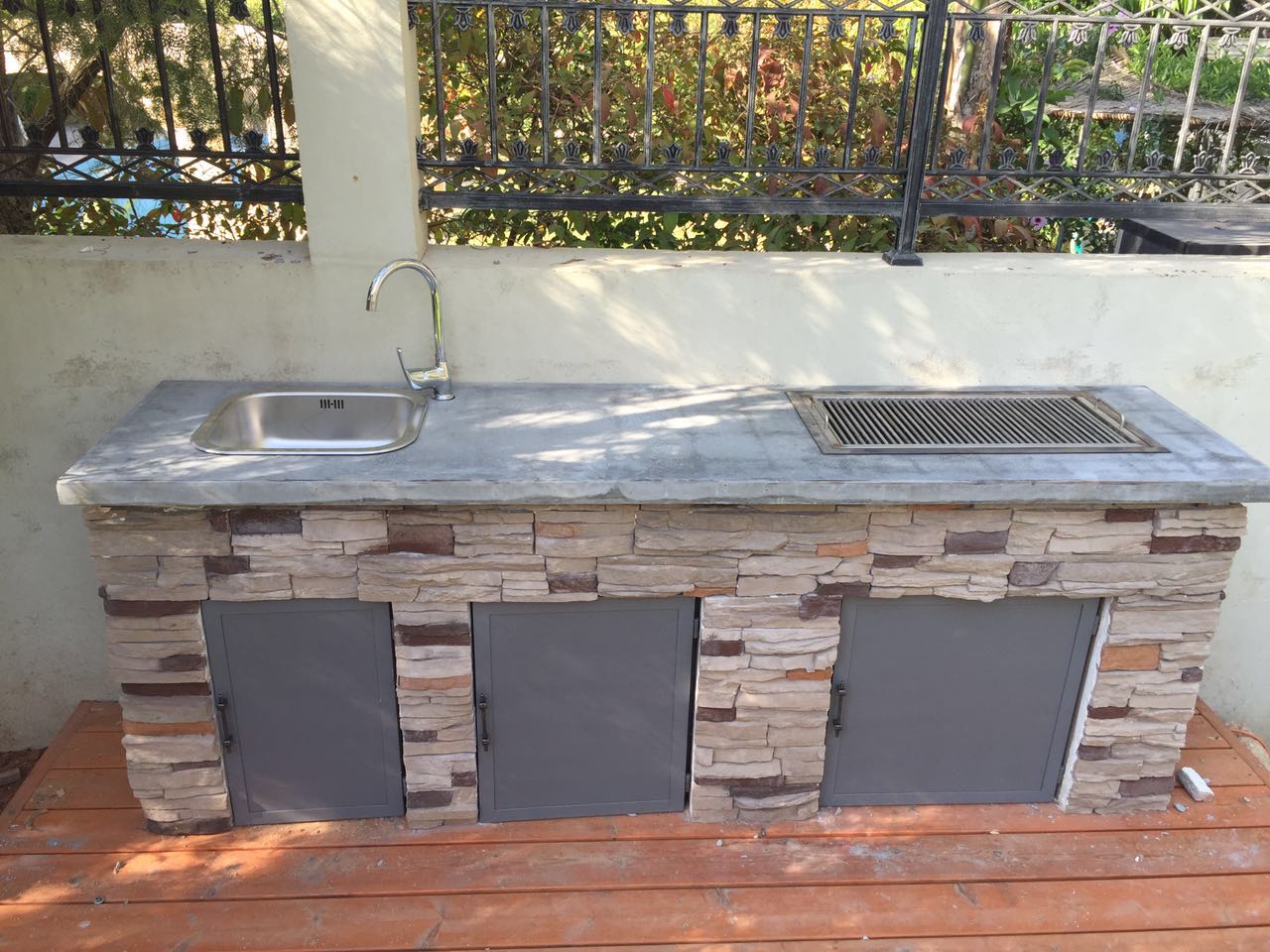 התאמתי את השיש והכיור למסגרת הברזל ציפיתי בעץ יצא מעולה מחזיק שנים בחצר ללא טיפול . העלות מצחיקה .