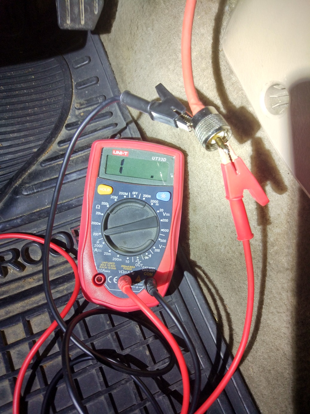 בזמן שהאנטנה מחוברת לבסיס (על הגג), מודד כזה, צריך להראות התנגדות אין סופית (ולא עשרות אוהמים כמו שכתבתי במקור, זה קשור למדידה אחרת).