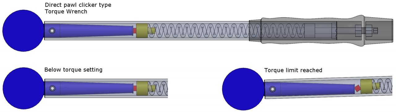 בסוג הפשוט ביותר (יש לי כזאת והיא נפלאה) הנקודה שבא מחזיקים קריטית, לכן ידית הפלסטיק יושבת על ציר כדי שהכוח יכנס בדיוק במרחק מסויים מהראש. מקווה שברור למה. מנגנון המדידה מבוסס על האלסטיות של הידית עצמה.