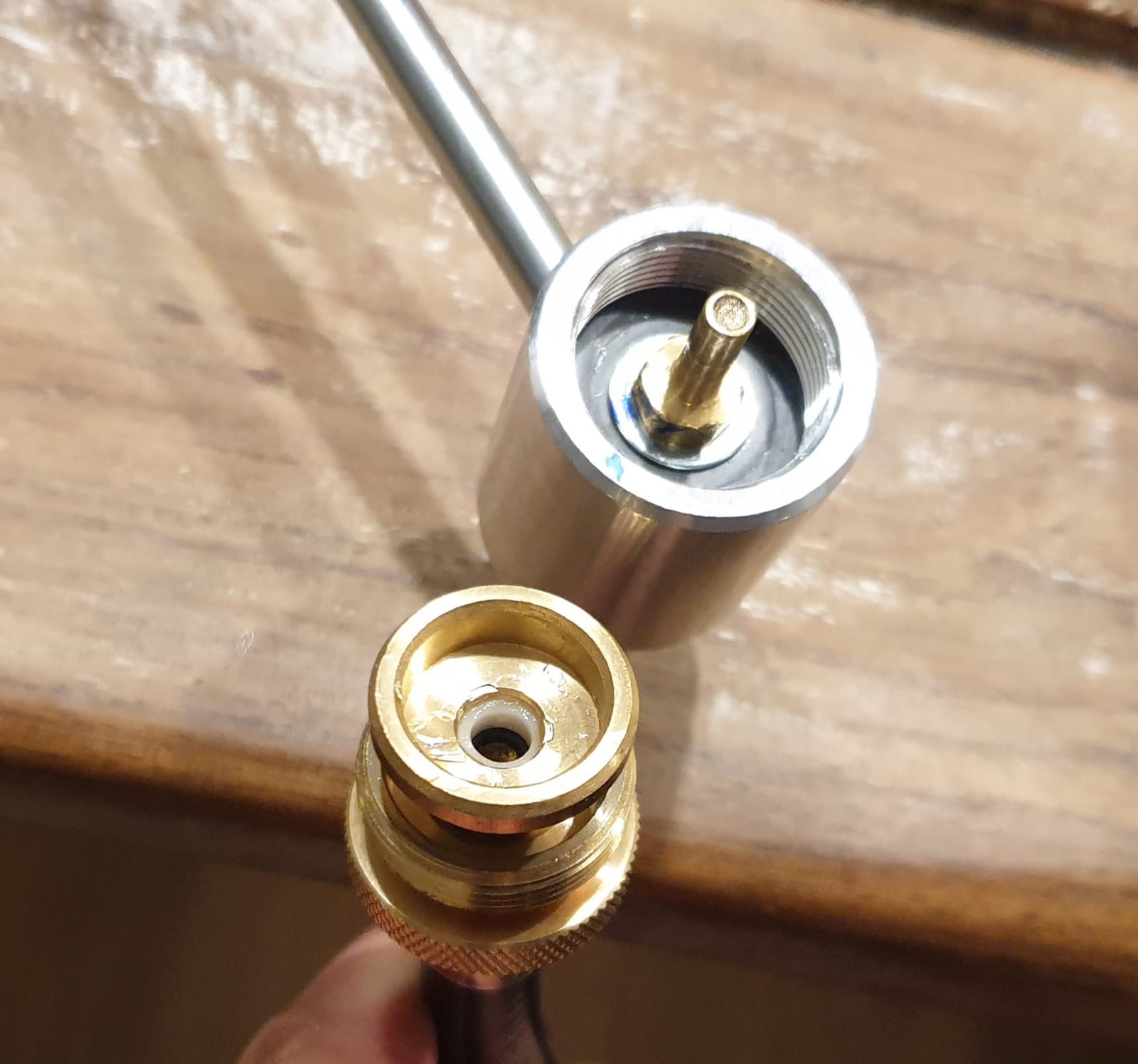 המחבר הגיע, נחתך צינור הגומי בצד של החיבור למיכל חד"פ 'אמריקאי' וחובר לווסת ישראלי. נאדה ! לא עובר גז בצינור :(