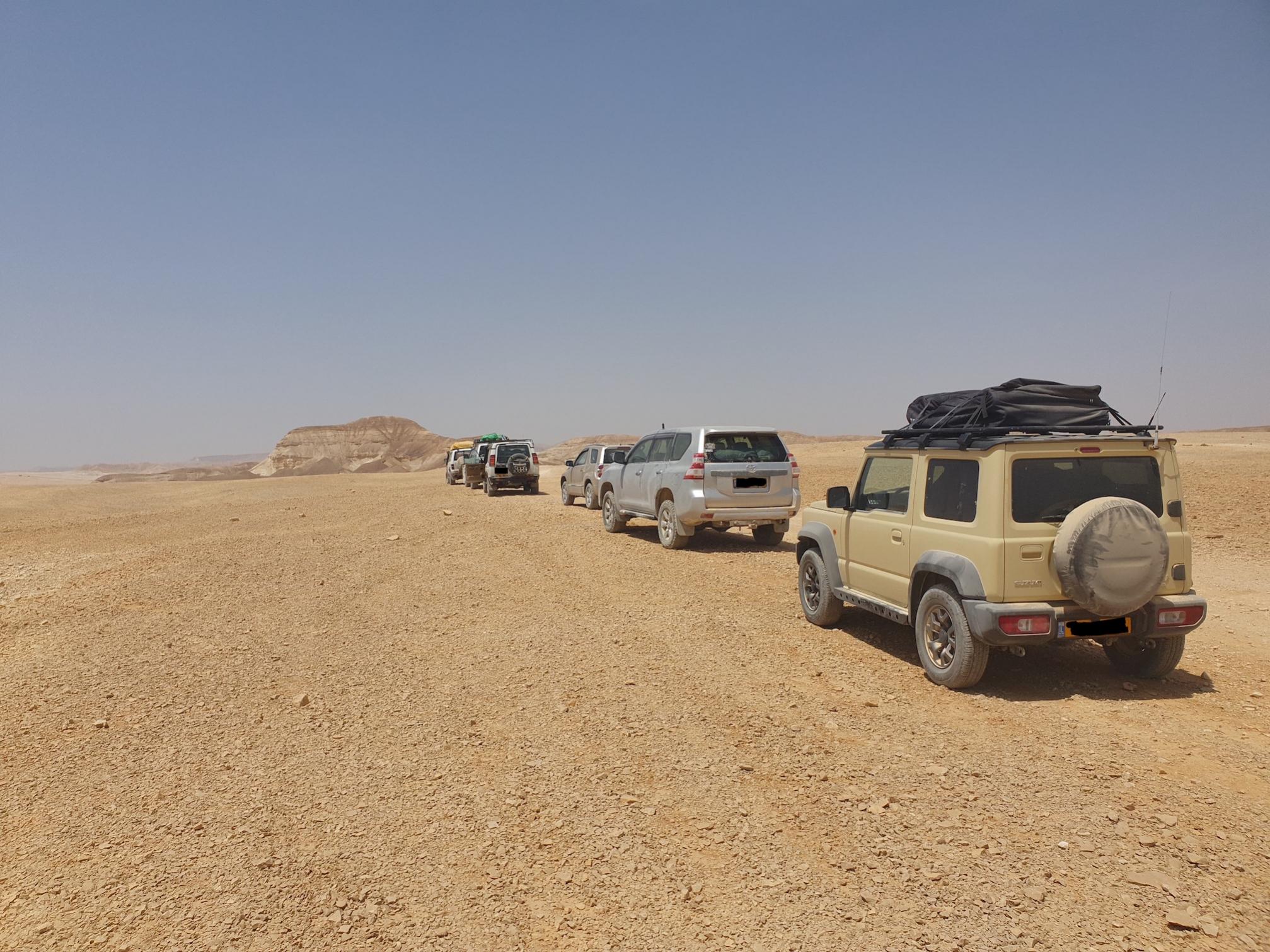 מטיילים ותיקים שלי בחוצי ישראל, שני זוגות בשני ג'ימנים חדשים, מלאים עד התקרה ומצויידים בגגונים. אחרת אין מצב.