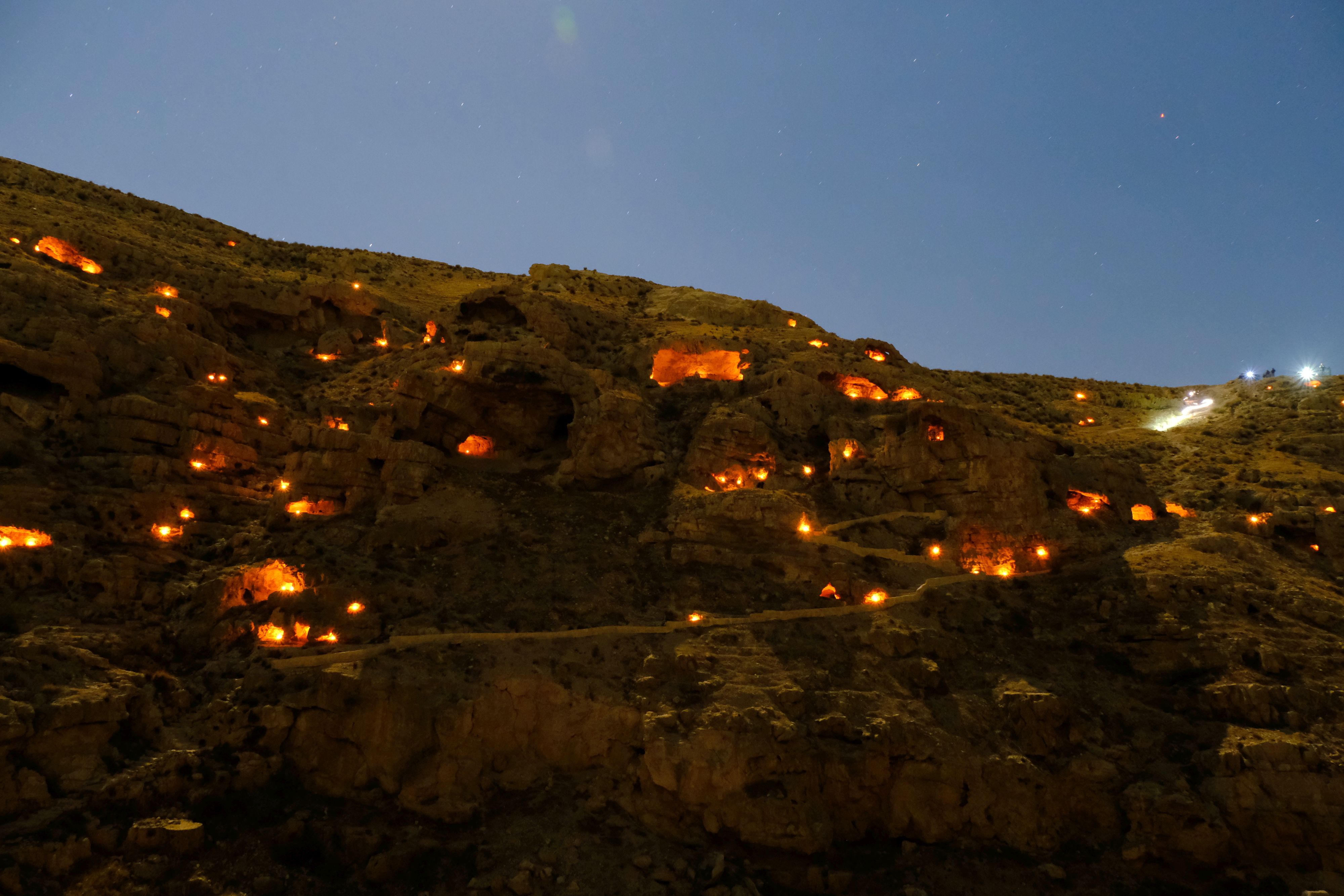 מספר הנרות הצנוע שהנזירים מדליקים בטל בשישים לעומת מאות הנרות שהבדואים שמתגוררים בצמוד למנזר, כל מיני חמודי ושות' (כולם שם טוענים שהם "אח של חמודי"), מדליקים כדי להפוך את האירוע לססגוני..... נו, הם מתפרנסים מזה.