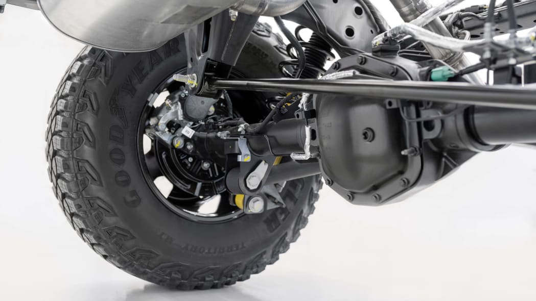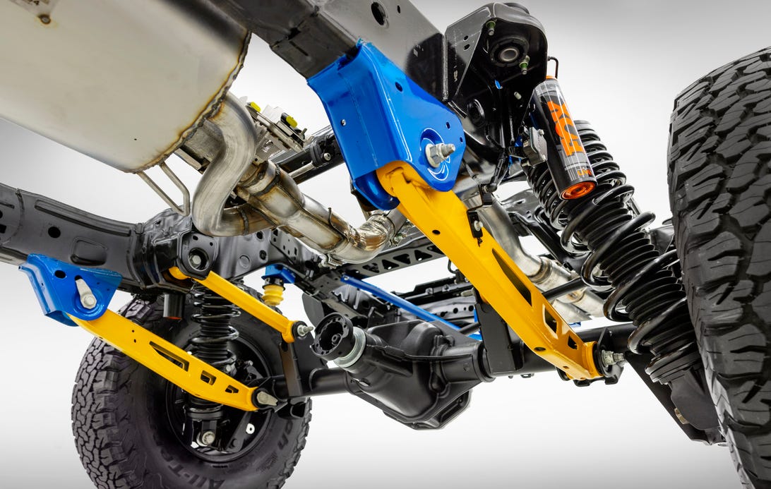 מתלה אחורי: זרועות שונות לגמרי, נקודות חיבור אחרות. קוילאובר עוד יותר שמן (פוקס בקוטר 3.1" שזה ענק!) שיושב מחוץ לשלדה. באמפסטופים. ועוד ועוד.